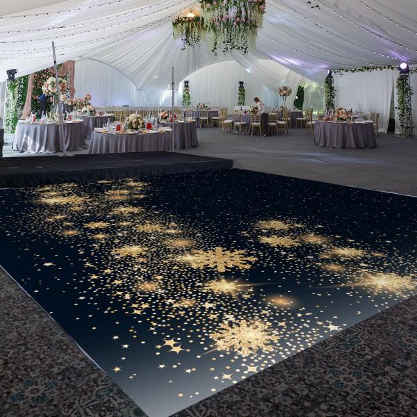 Transform your venue into a fun and fabulous space with this custom size dance floor wrap. Made of high quality, low-tac, dot adhesive vinyl, it's temporary, easy to remove, and sure to dazzle onlookers and dancers alike. All you have to do is select your desired width and length! Our Star Struck design belongs to our "New Year's Day" print designs for your most upscale events.