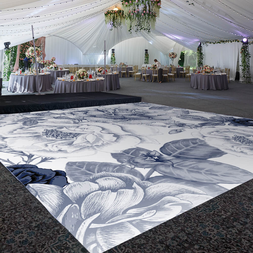 Transform your venue with this custom size dance floor wrap! Made of high-quality, low-tac, dot adhesive vinyl which is temporary and easy to remove, the material can be used on hardwood floors, event dance floors, or polished concrete. The choice is yours. It's time to dance the night away with these dazzling floor fabrics!