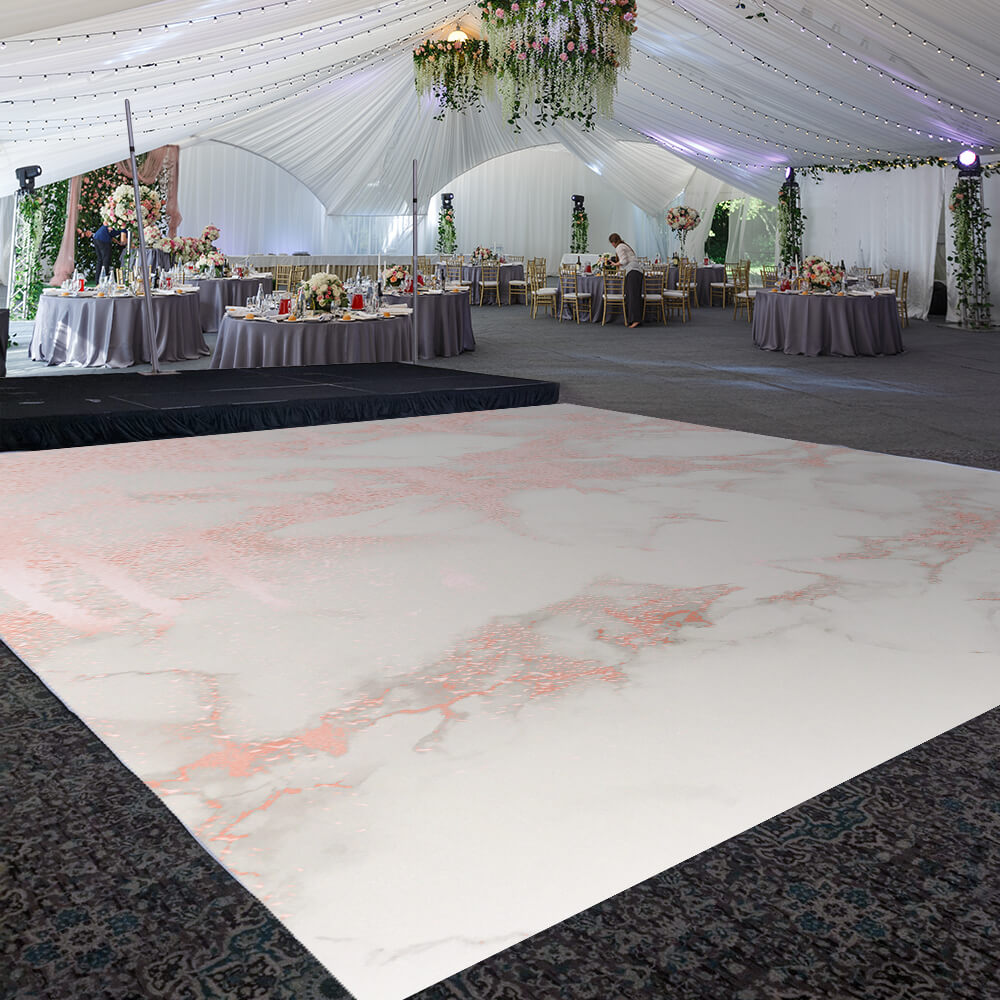 Transform your venue with this custom size dance floor wrap! Made of high-quality, low-tac, dot adhesive vinyl which is temporary and easy to remove, the material can be used on hardwood floors, event dance floors, or polished concrete. The choice is yours. It's time to dance the night away with these dazzling floor fabrics!