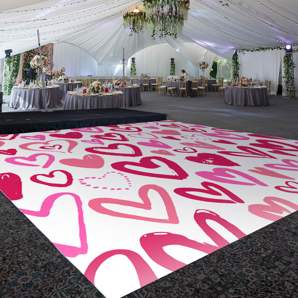 Transform your venue with this custom size dance floor wrap! Made of high-quality, low-tac, dot adhesive vinyl which is temporary and easy to remove, the material can be used on hardwood floors, event dance floors, or polished concrete. The choice is yours. It's time to dance the night away with these dazzling floor fabrics! Our Rosa design belongs to our "Valentines Day" print designs for your most upscale events.