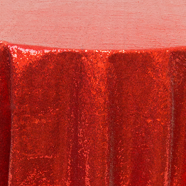 Our red round sequin tablecloth is a beautiful sequin tablecloth that works for all occasions. We design our red round sequin tablecloth with the highest quality polyester and dazzling sequins. Our sequin fabrics contain more sequins than competing brands. This red round sequin cover is 126” in diameter and heavy in weight.