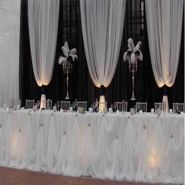 Don’t fear if a skirt from your Cinderella “stringed” table skirt kit rips or stains; just replace it with this replacement skirt. This skirt is made from beautiful sheer voile fabric, measuring 10ft tall and 40ft wide with a rope pocket sewn along the top. This replacement skirt does not include ropes or anything other than the fabric skirt.