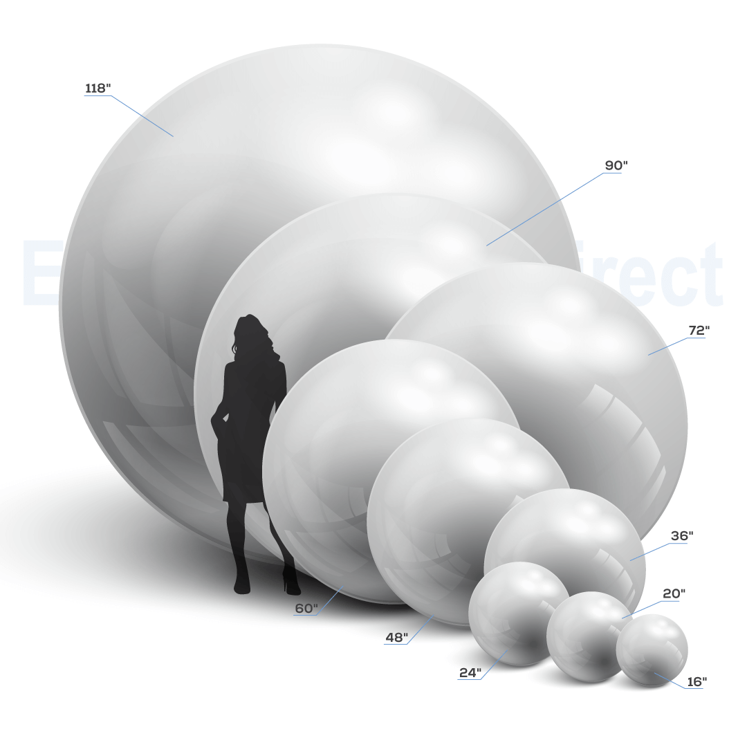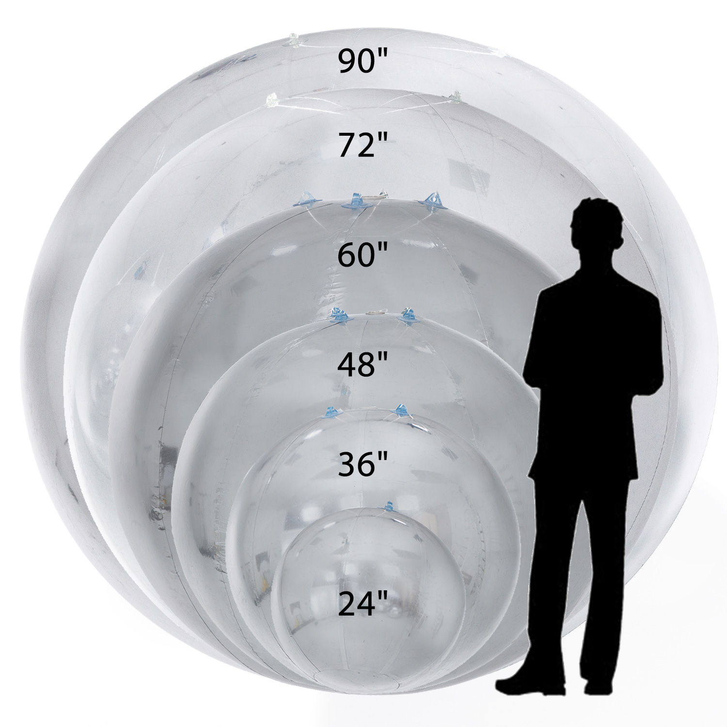 Descriptive notes: Our inflatable balls are 0.4mm Double wall thickness for all balls 24”-60”, for 72”, 90” or Bigger you have the option of single wall thickness to save on cost or double layer for quality.