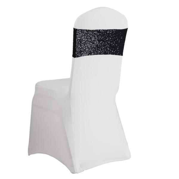 Sequined chair bands give you the “Bling” effect while bringing your color pallet off the table and throughout your space. Our Eastern Mills chair bands are made with high-quality spandex with double-stitched seems for maximum strength. High quality, tiny sequins are attached so that they do not catch or pop so that these bands have versatility and can withstand years of professional use.