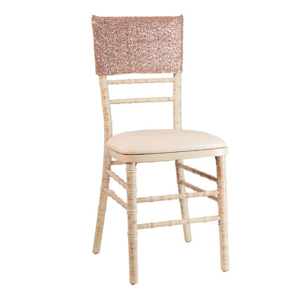These blush pink sequin and spandex chair cuffs are a simple way to add some sparkle to your table décor. Made for Square backed chairs, you simply slip these cuffs over the chair back. That’s all there is to it.