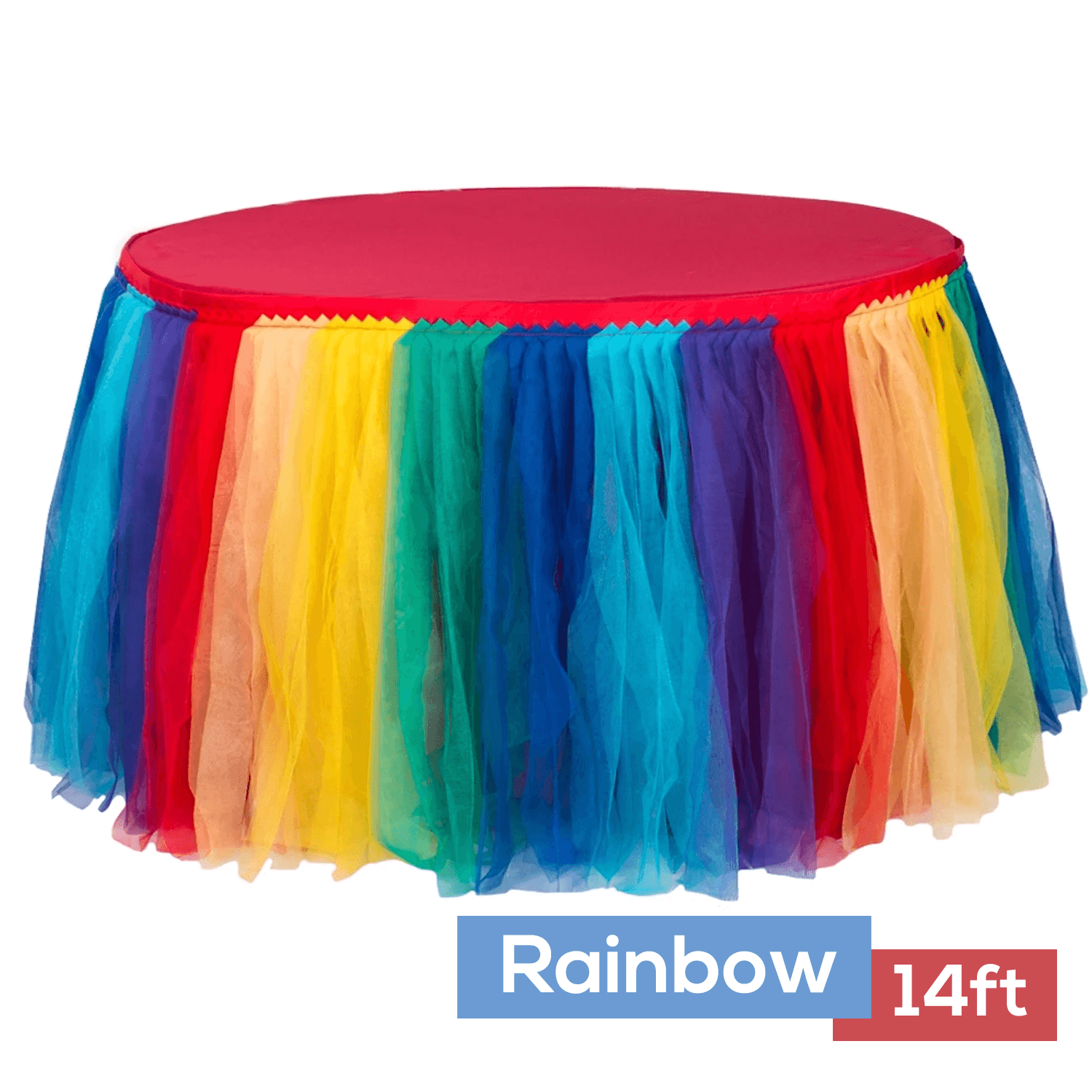Sheer Tulle Tutu Table Skirt 14ft long in Rainbow