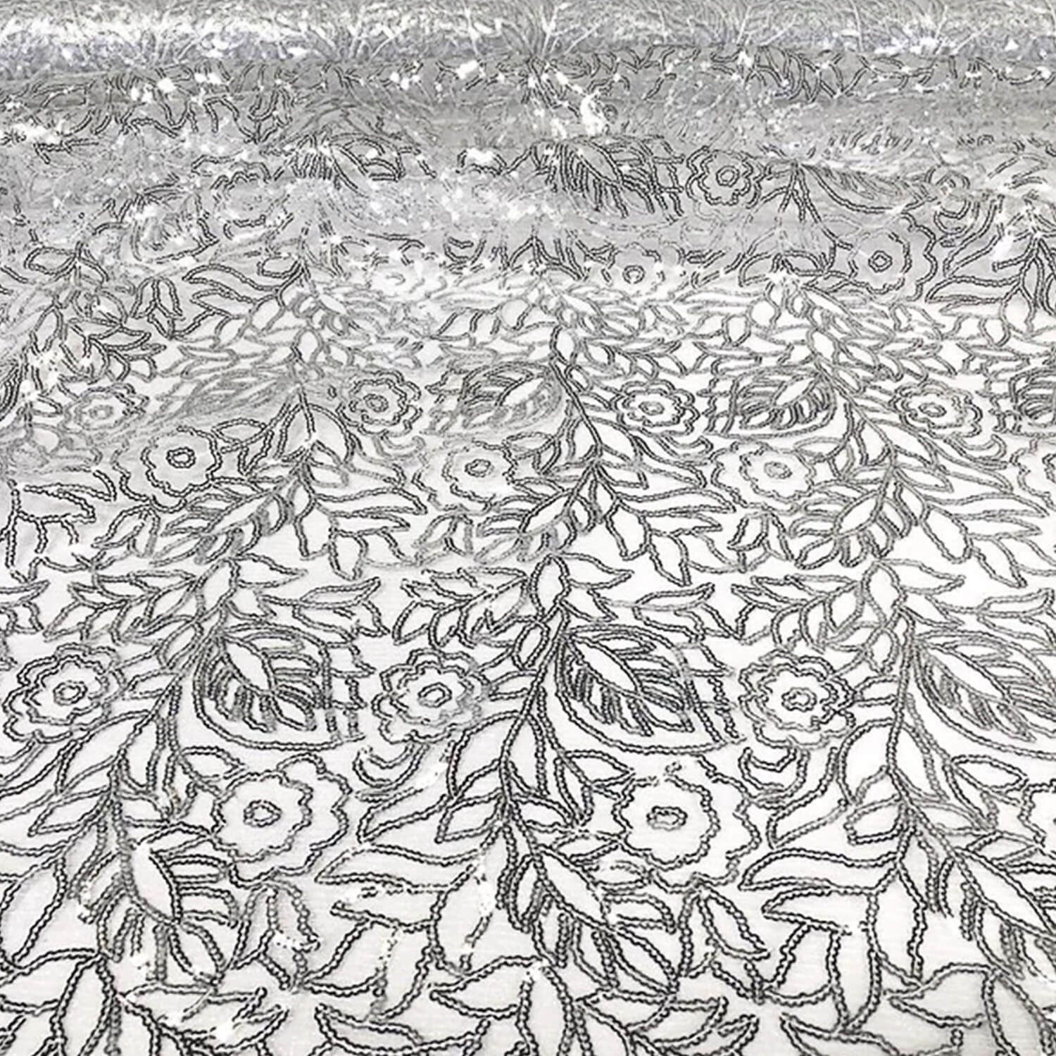 Silver - Fancy Leaf Sequin Overlay - Many Size Options