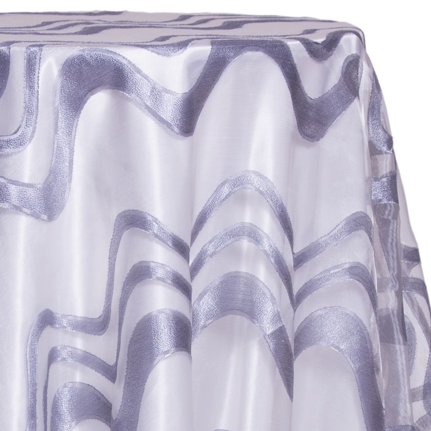 This silver modern metallic sheer tablecloth will bring a beautiful decoration to your tables and blend your decor themes. The silver modern metallic sheer tablecloth has alternating stripes of metallic fabric which catch light and create a shimmering sparkle. With all of our size and shape options, we are sure you can find a silver modern metallic sheer tablecloth right for you.