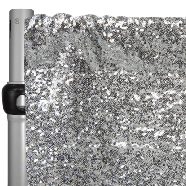 These tightly stitched sequin backdrop curtains by Eastern Mills come with a 4" rod pocket.