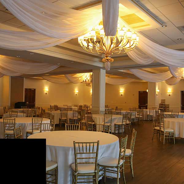 All of our prefabricated ceiling drapes are Fire Retardant.