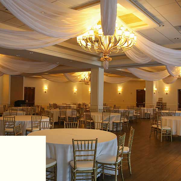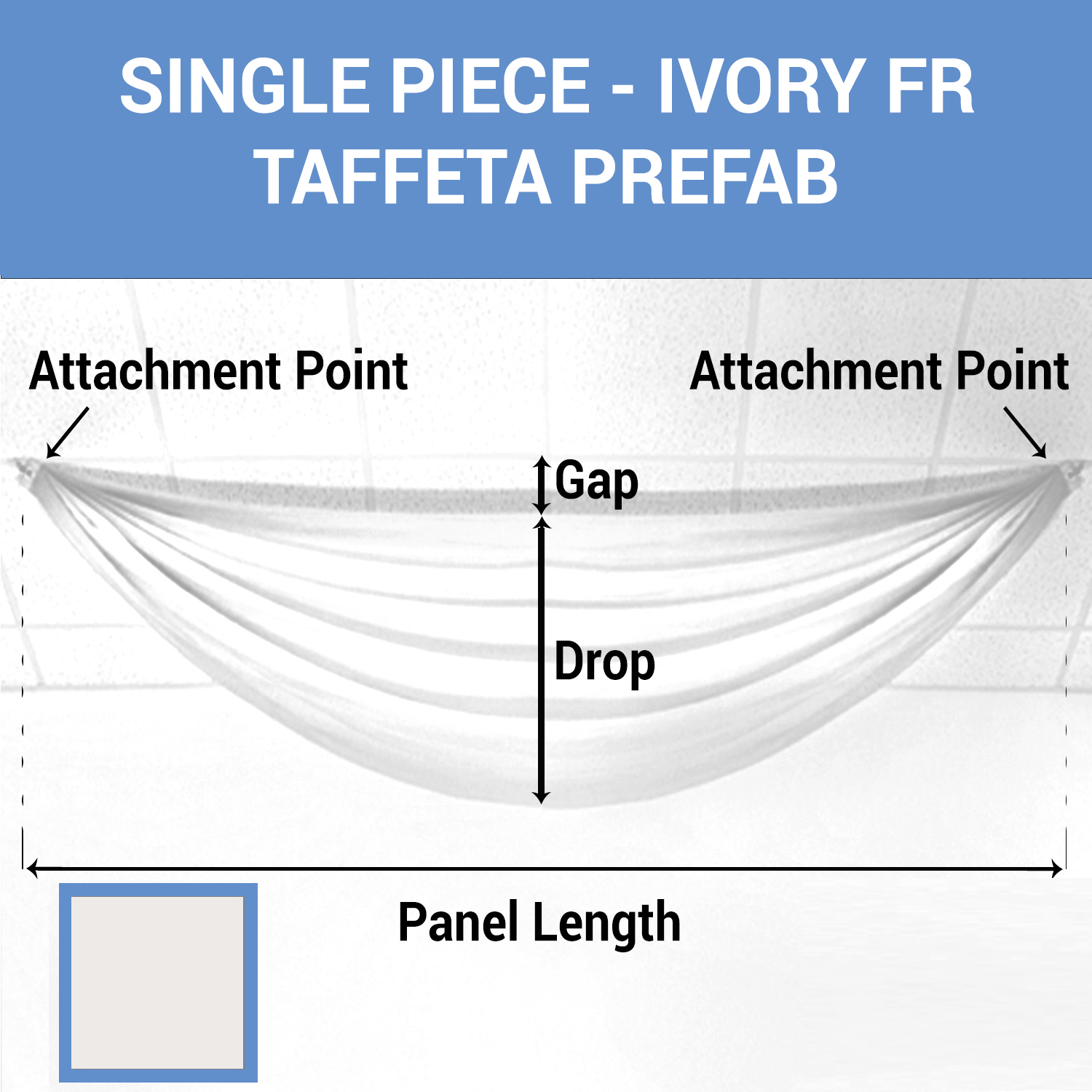 Our ivory taffeta prefabricated ceiling drape panel creates a classy and elegant design for your next event decoration. Choose the length and drop of our ivory fabric panel and prepare for the easiest setup you’ll experience. Our hand-sewn panels are fire-retardant and made with high-quality ivory taffeta fabric.