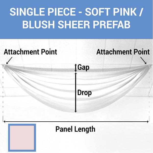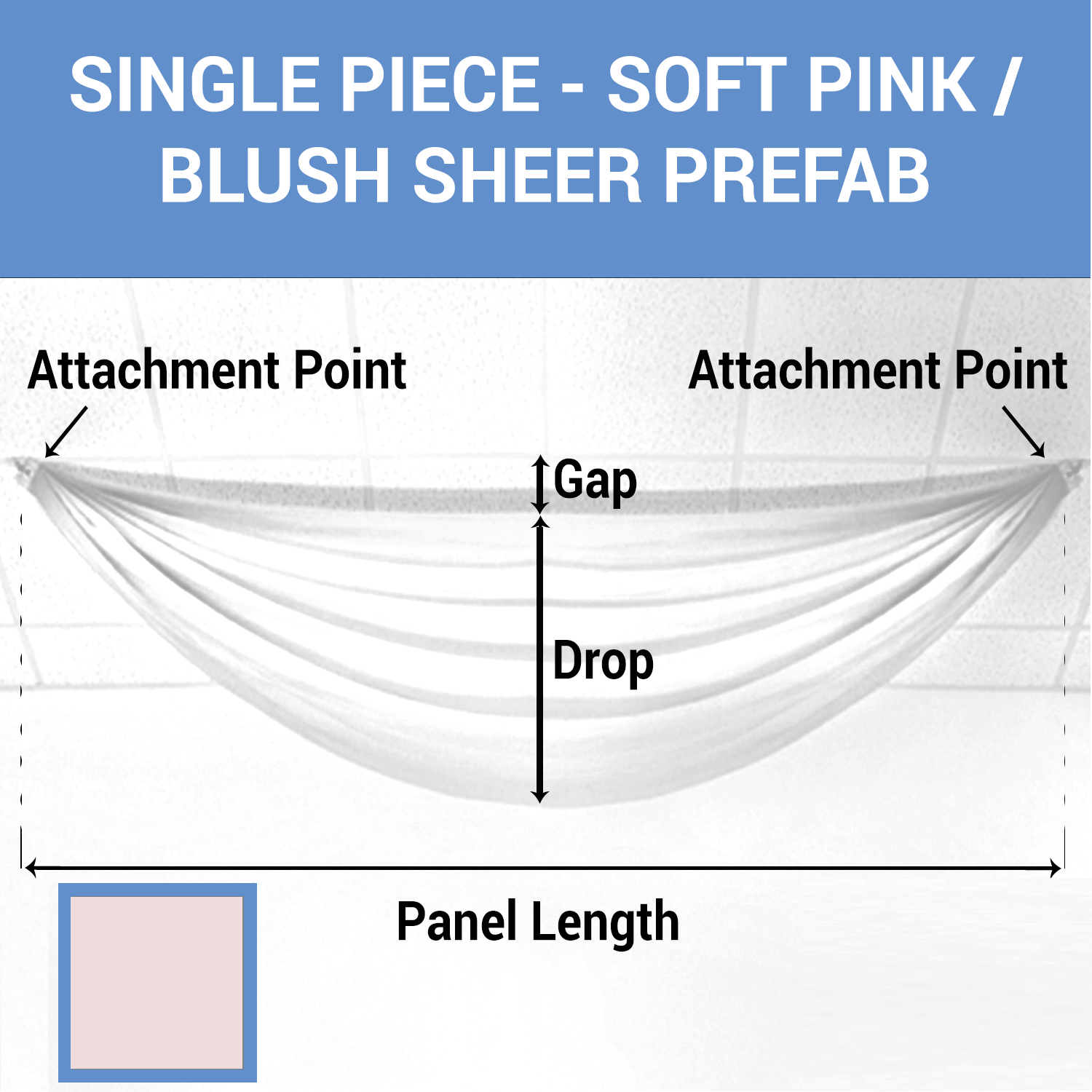 Single Piece - Soft Pink Sheer Prefabricated Ceiling Drape Panel - Choose Length and Drop!