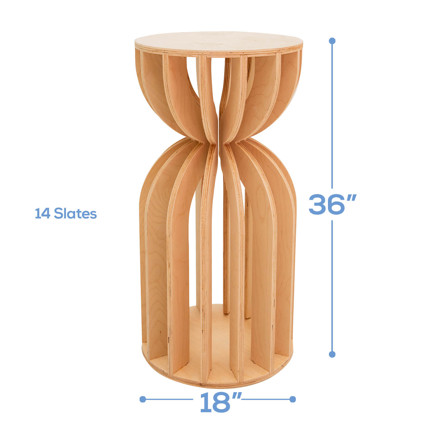 Our custom made wood Plinth Pedestals are made from 3/4 and 1/2 birch plywood. This style has 14 wood slats. Top and bottom made from birch plywood