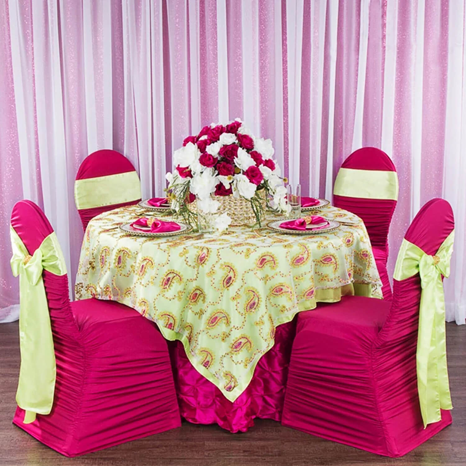 Pair with other items from our satin collection for a cohesive look, or to create dramatic contrast. We carry tablecloths, overlays, table runners, fabric rolls, sashes, chair covers and more.