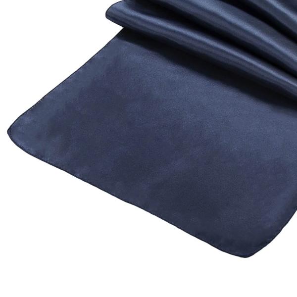 The dark, navy blue satin beautifully ties together your color scheme, and adds a bit of sophistication to a table setting. These runners are also a simple way to anchor centerpieces, candlesticks, and tableware.