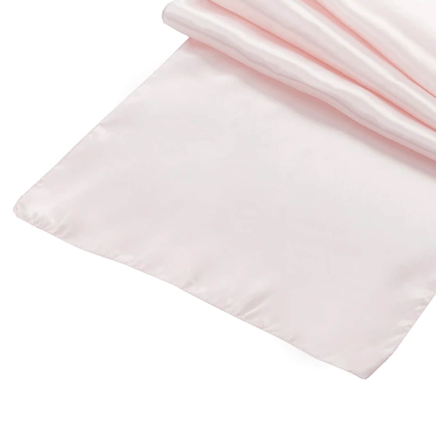 The pale pink satin beautifully ties together your color scheme, and adds a bit of sophistication to a table setting. These runners are also a simple way to bring soft color to the middle of your table.