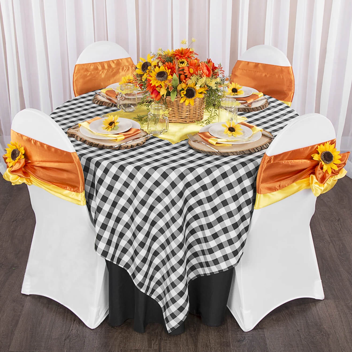 Chair sashes dress up functional furniture and give you the ability to create cohesive color schemes, add pops of color, or create a bit of dramatic effect with ease – just pick a color and create a bow, drape the sash, or use to layer over other fabrics and voilà!