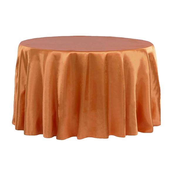 Sleek Satin Tablecloth 108" Round – Burnt Orange