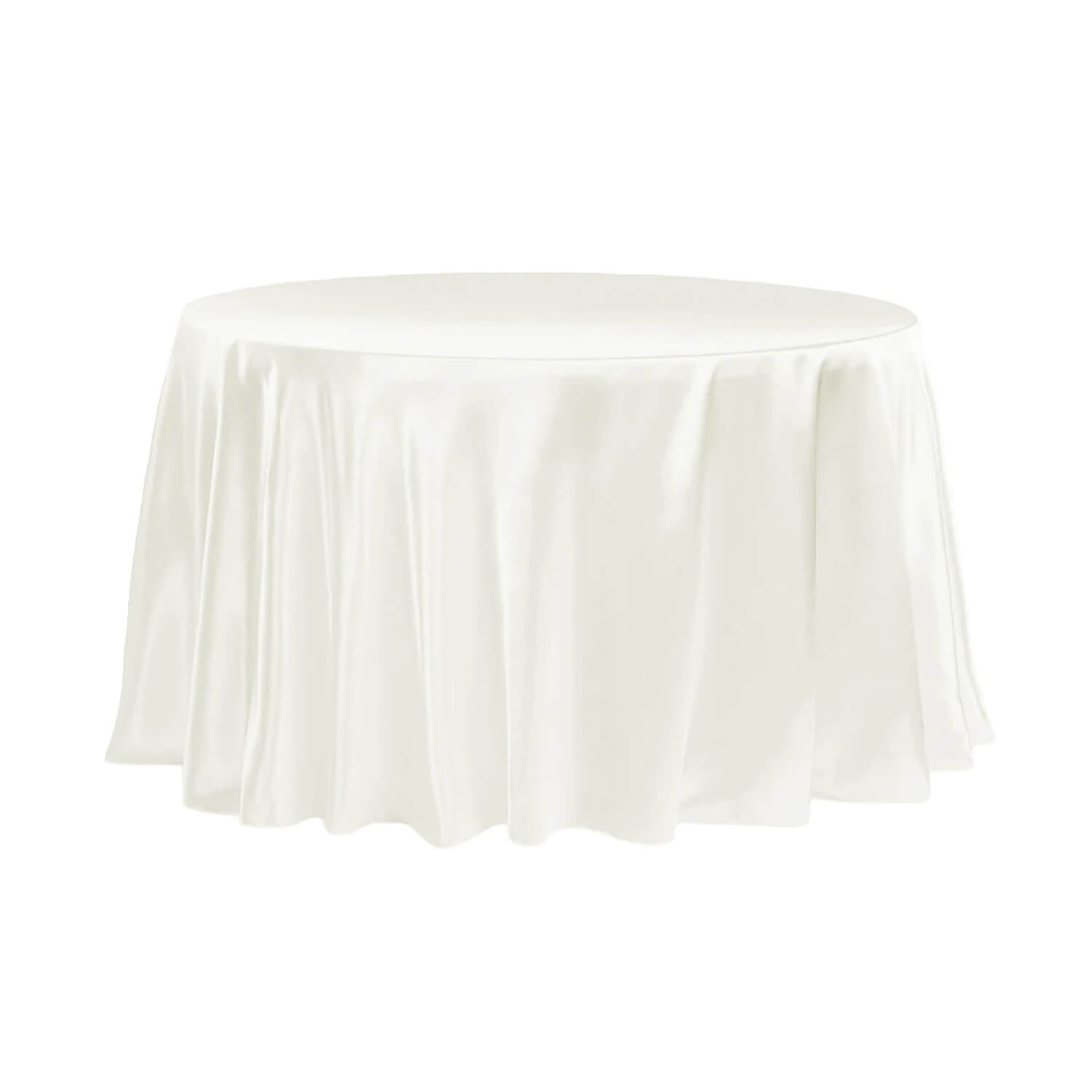 This round, shimmering satin tablecloth will elevate the look of your décor. The luxurious sheen of this fabric bounces the light while the fabric itself hangs in delicate looking folds to create a romantic atmosphere for your special event.