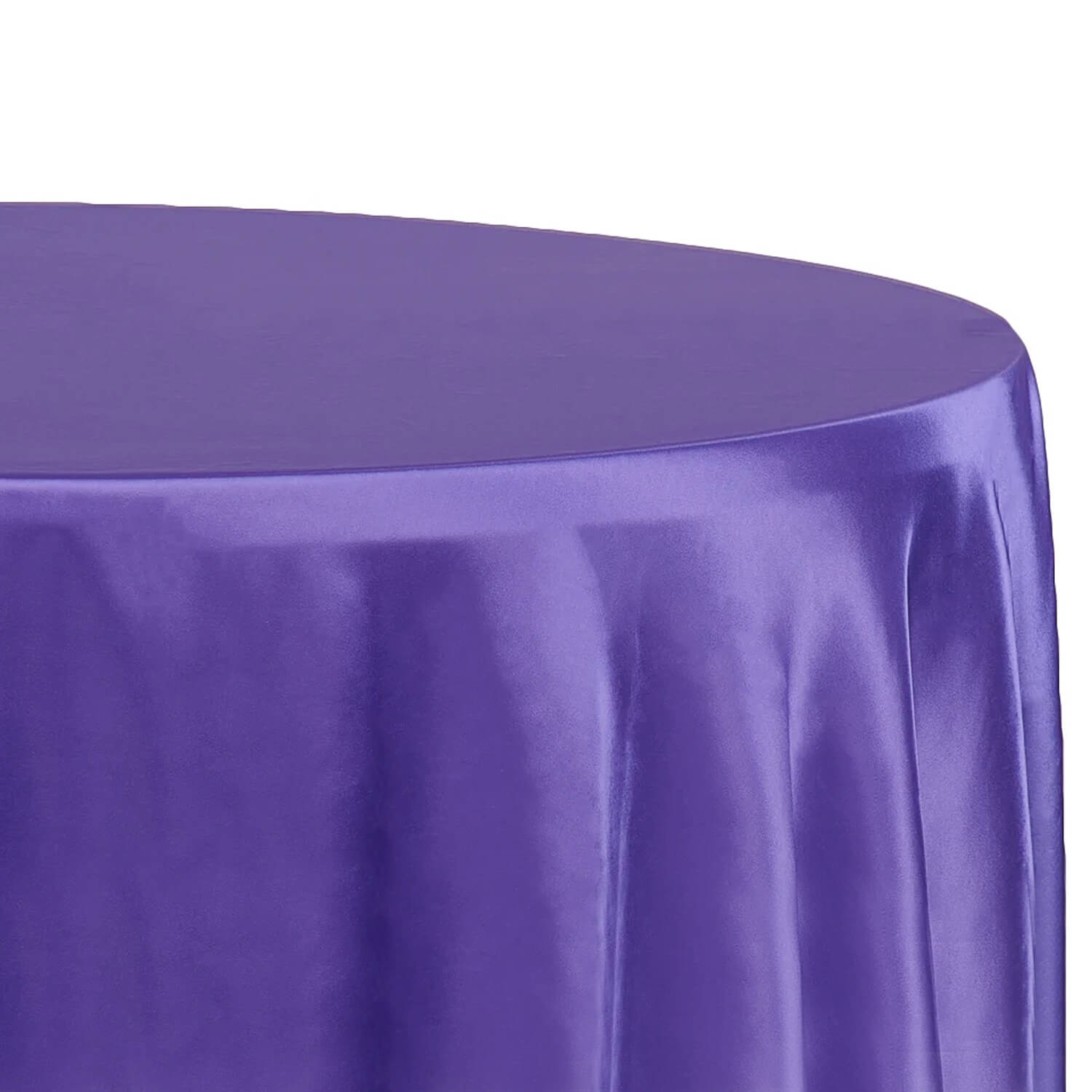 This round, shimmering satin tablecloth will elevate the look of your décor. The luxurious sheen of this fabric bounces the light while the fabric itself hangs in delicate looking folds to create a romantic atmosphere for your special event.