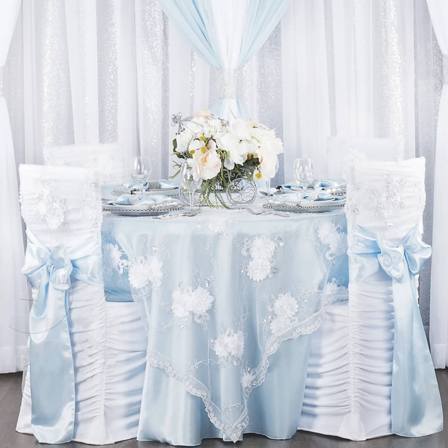 Sleek Satin Tablecloth 120" Round – Baby Blue