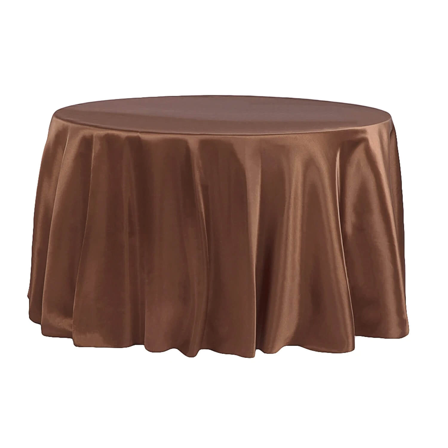 Sleek Satin Tablecloth 120" Round – Chocolate Brown