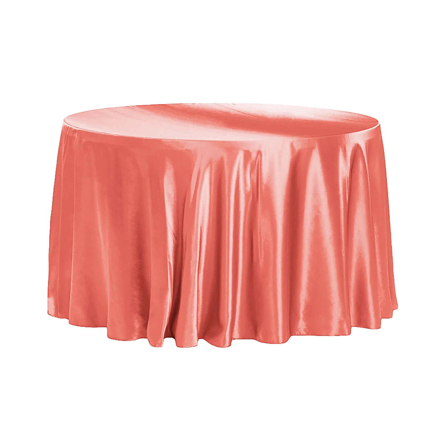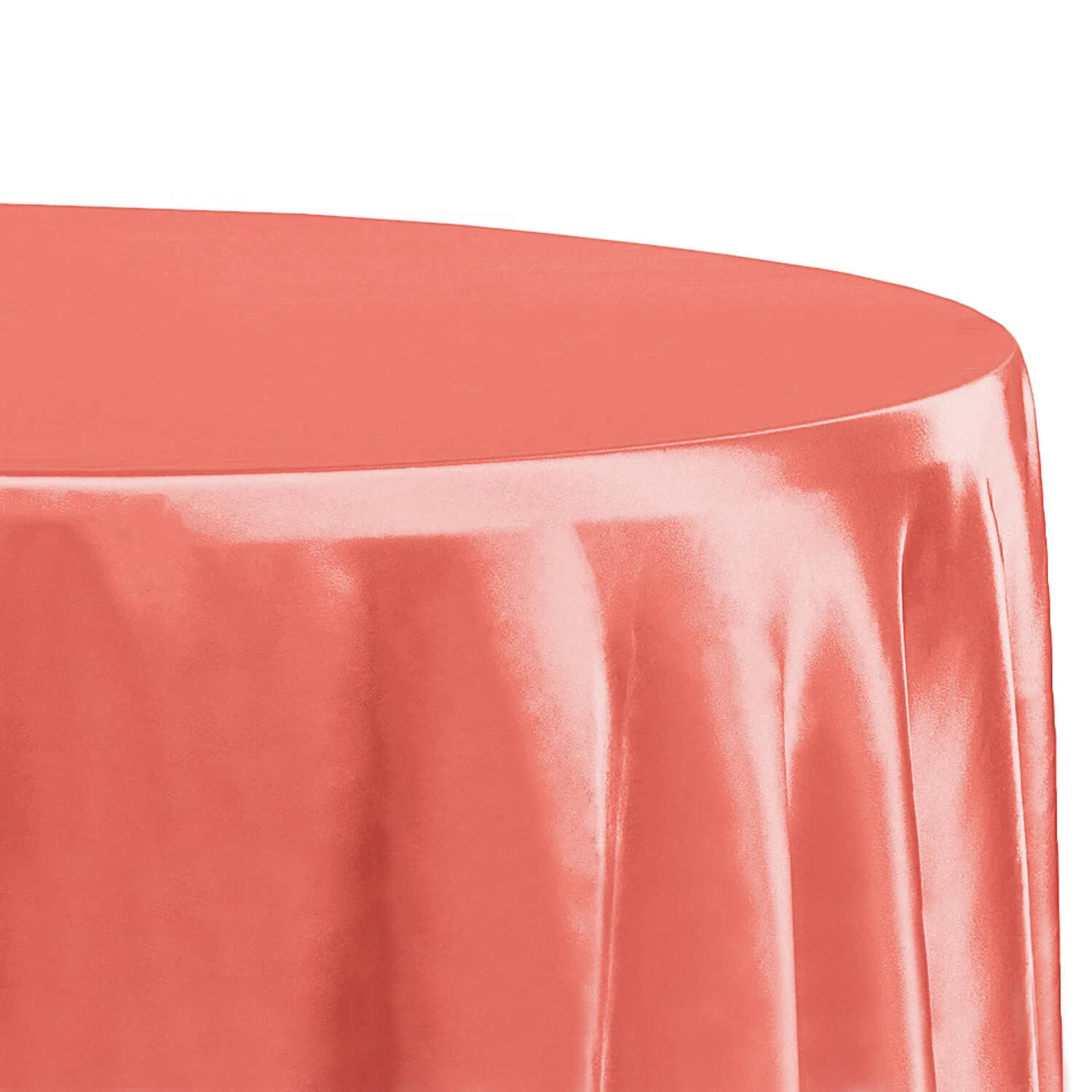 This round, shimmering satin tablecloth will elevate the look of your décor. The luxurious sheen of this fabric bounces the light while the fabric itself hangs in delicate looking folds to create a romantic atmosphere for your special event.