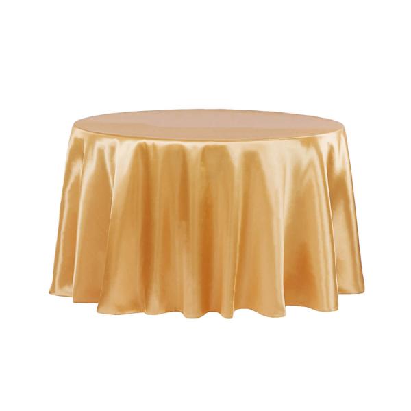 Sleek Satin Tablecloth 120" Round – Antique Gold