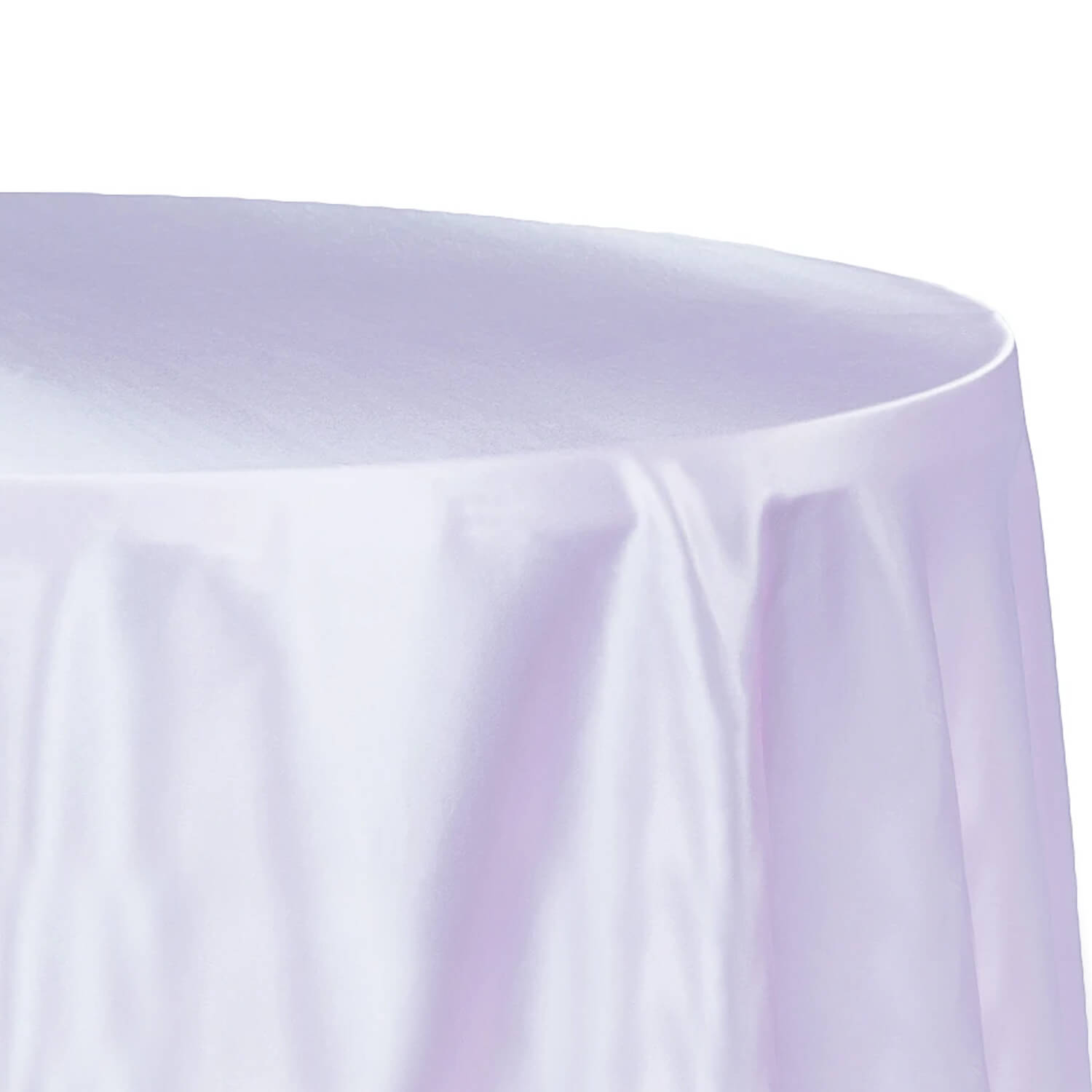 This round, shimmering satin tablecloth will elevate the look of your décor. The luxurious sheen of this fabric bounces the light while the fabric itself hangs in delicate looking folds to create a romantic atmosphere for your special event.
