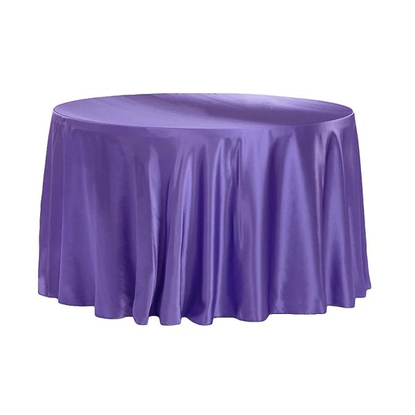 This round, shimmering satin tablecloth will elevate the look of your décor. The luxurious sheen of this fabric bounces the light while the fabric itself hangs in delicate looking folds to create a romantic atmosphere for your special event.