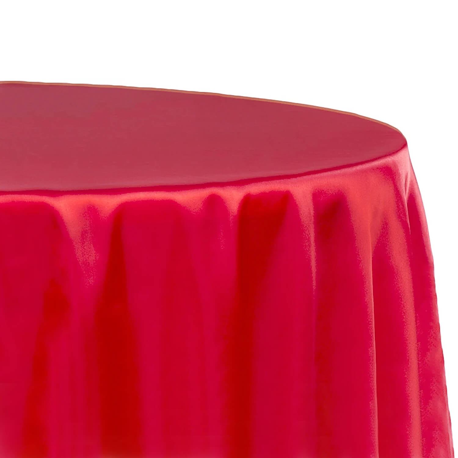 This round, shimmering satin tablecloth will elevate the look of your décor. The luxurious sheen of this fabric bounces the light while the fabric itself hangs in delicate looking folds to create a romantic atmosphere for your special event.