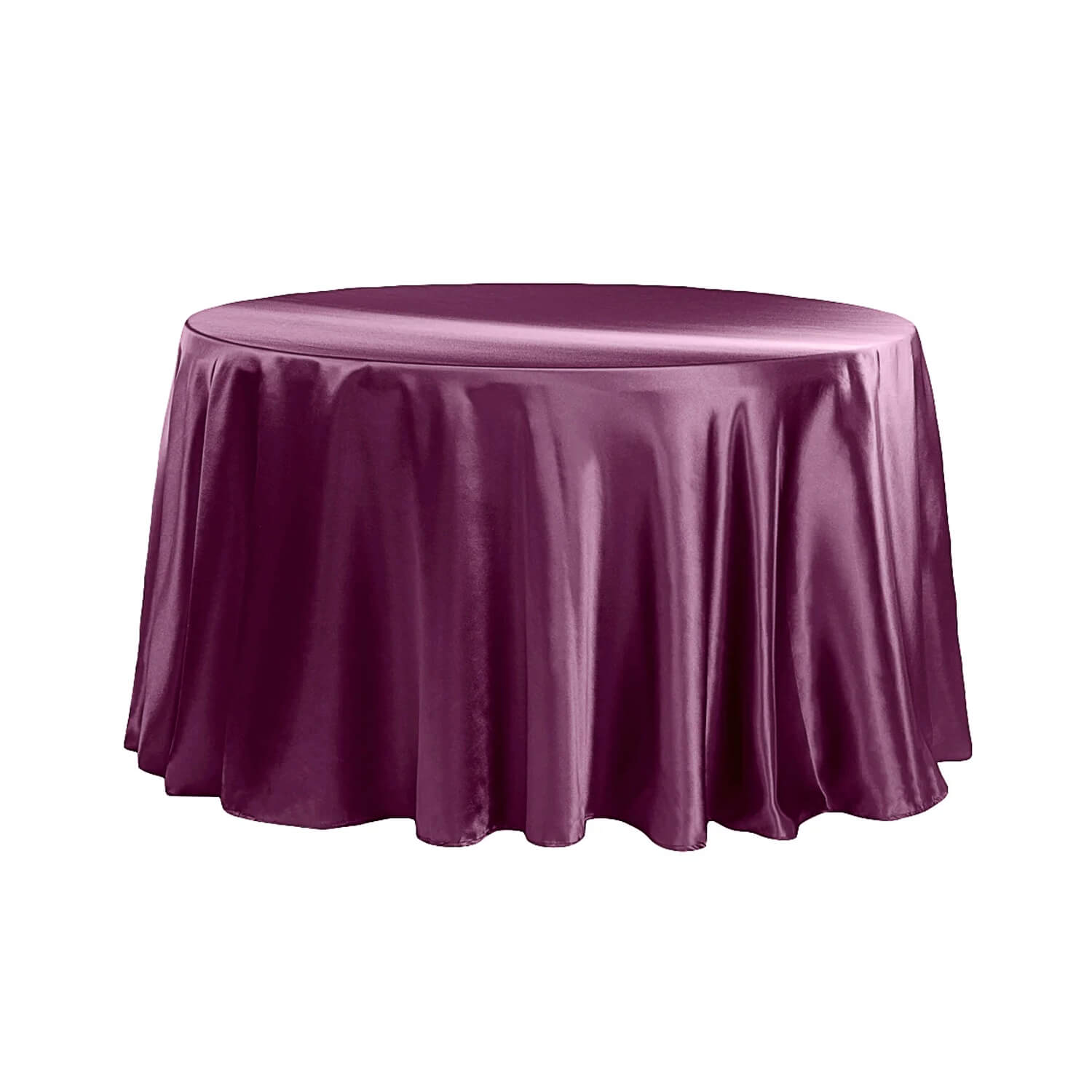 This round, shimmering satin tablecloth will elevate the look of your décor. The luxurious sheen of this fabric bounces the light while the fabric itself hangs in delicate looking folds to create a romantic atmosphere for your special event.