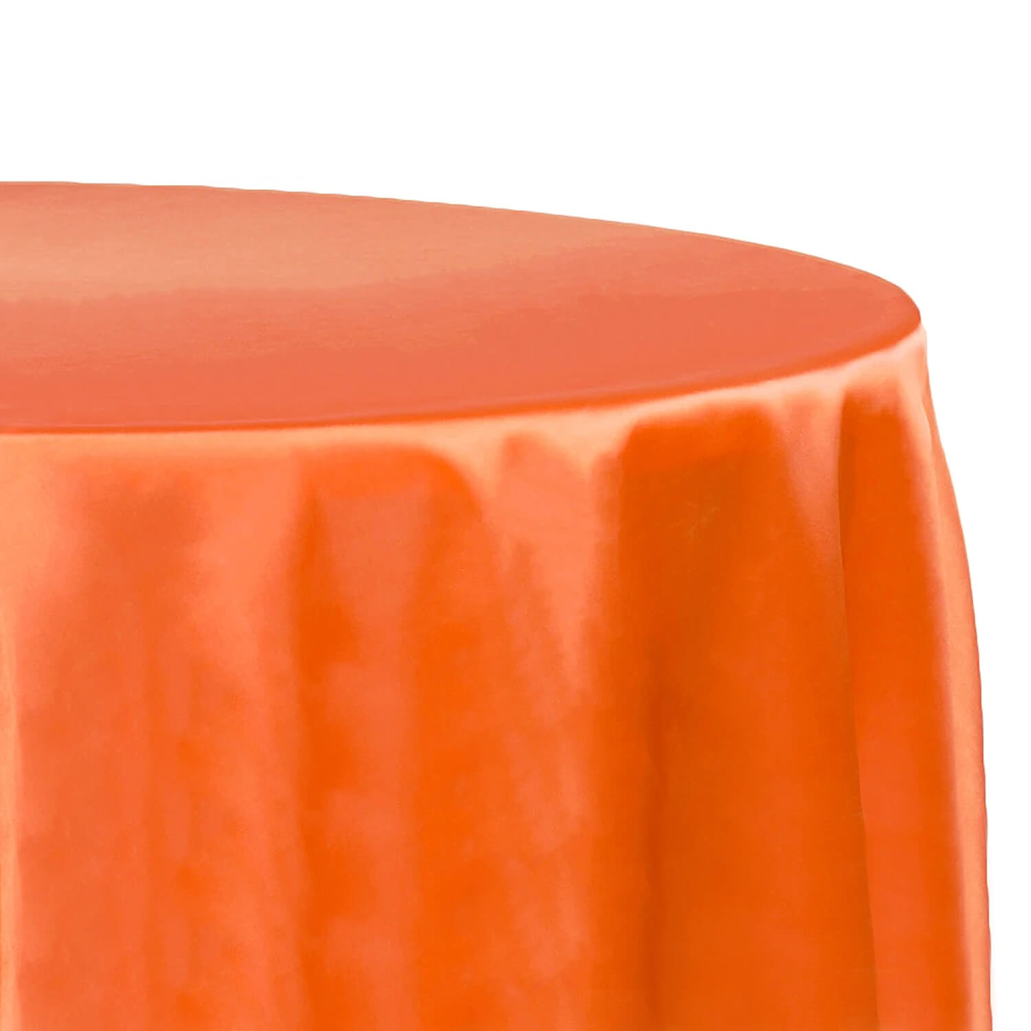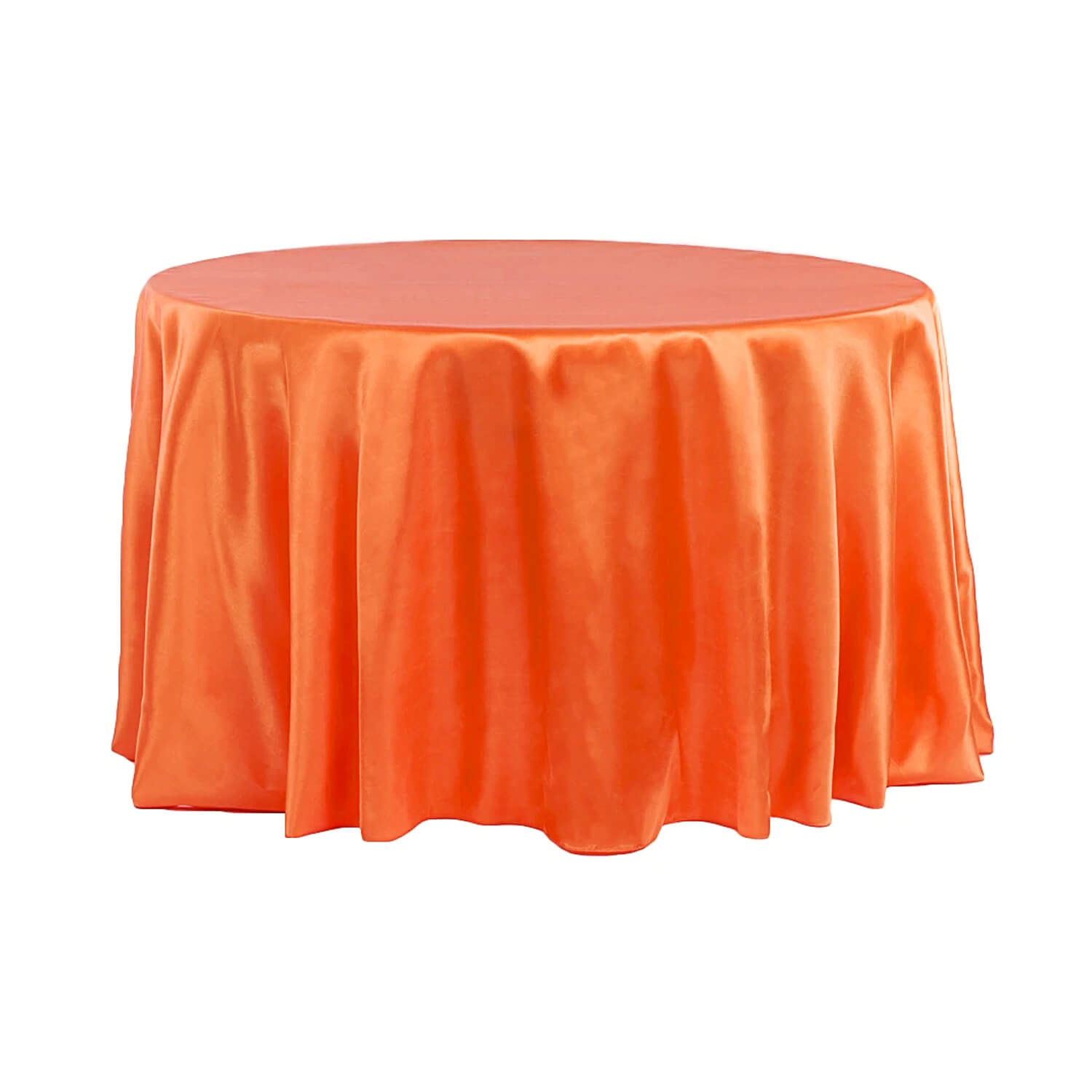This round, shimmering satin tablecloth will elevate the look of your décor. The luxurious sheen of this fabric bounces the light while the fabric itself hangs in delicate looking folds to create a romantic atmosphere for your special event.