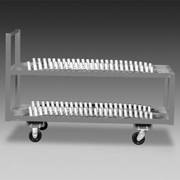 This slip-fit base care is an amazing invention that works with the design of our bases and saves you time and energy. When we designed our bases, we created a nook for the pins from other bases to slip into. This creates an easy stacking as shown with our slip-fit base cart. It can hold 100 16 by 14 bases or 150 8 x 14 bases.
