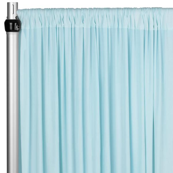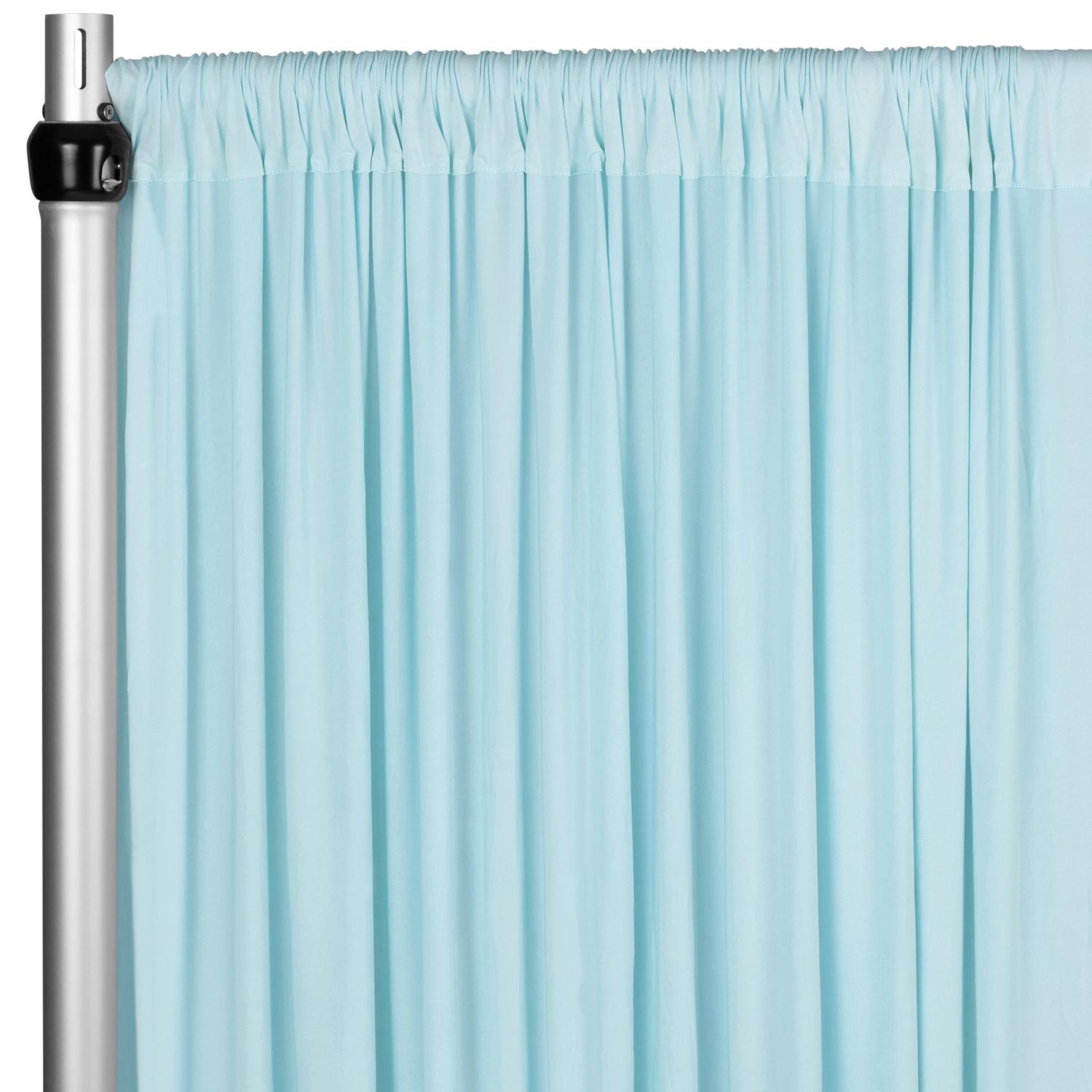 Made of 90% polyester and 10% lycra spandex, this durable drape stretches crosswise and lengthwise to create eye-catching feature walls. The generous 10ft x 60" width offers more than enough material to cover your desired party zone for a clean, stylish look, and the 4" pockets assure easy installation. What's more? The fabric is wrinkle-free, machine washable, and dryable, making it a perfect decor prop to have on hand for repeat use. The baby blue hue gives them especially charming look.