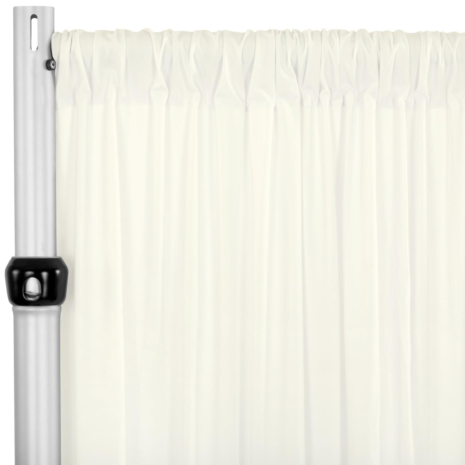 Made of 90% polyester and 10% lycra spandex, this durable drape stretches crosswise and lengthwise to create eye-catching feature walls. The generous 10ft x 60" width offers more than enough material to cover your desired party zone for a clean, stylish look, and the 4" pockets assure easy installation. What's more? The fabric is wrinkle-free, machine washable, and dryable, making it a perfect decor prop to have on hand for repeat use. The ivory hue gives them especially classic look.