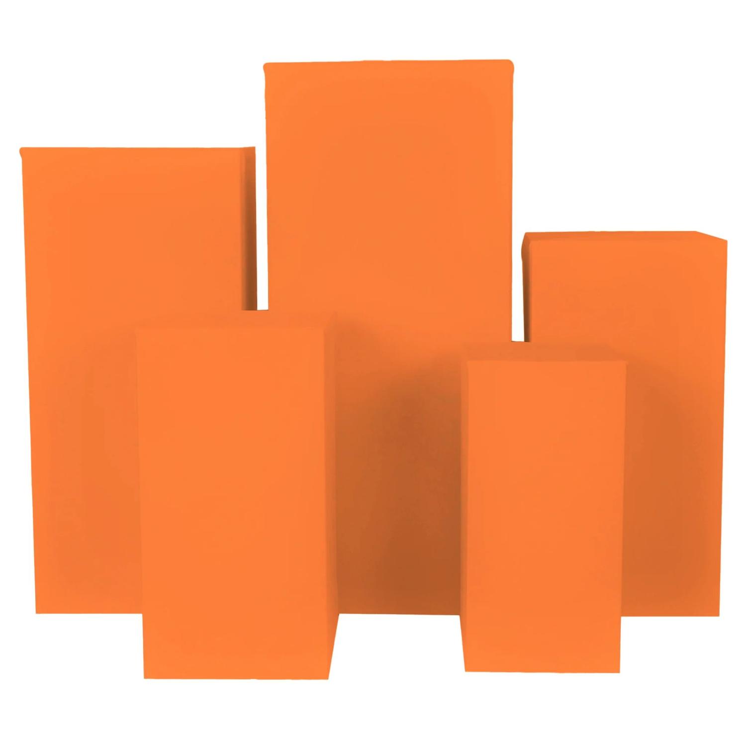 Keep your pedestal and pillar decor minimal and sleek with this spandex cover set. Whether used to cover unsightly surfaces or to add a dash of elegance, these spandex covers will definitely elevate the atmosphere. Perfect for weddings, birthday parties, anniversaries, and more. The orange hue gives them an especially bright and cheerful look.