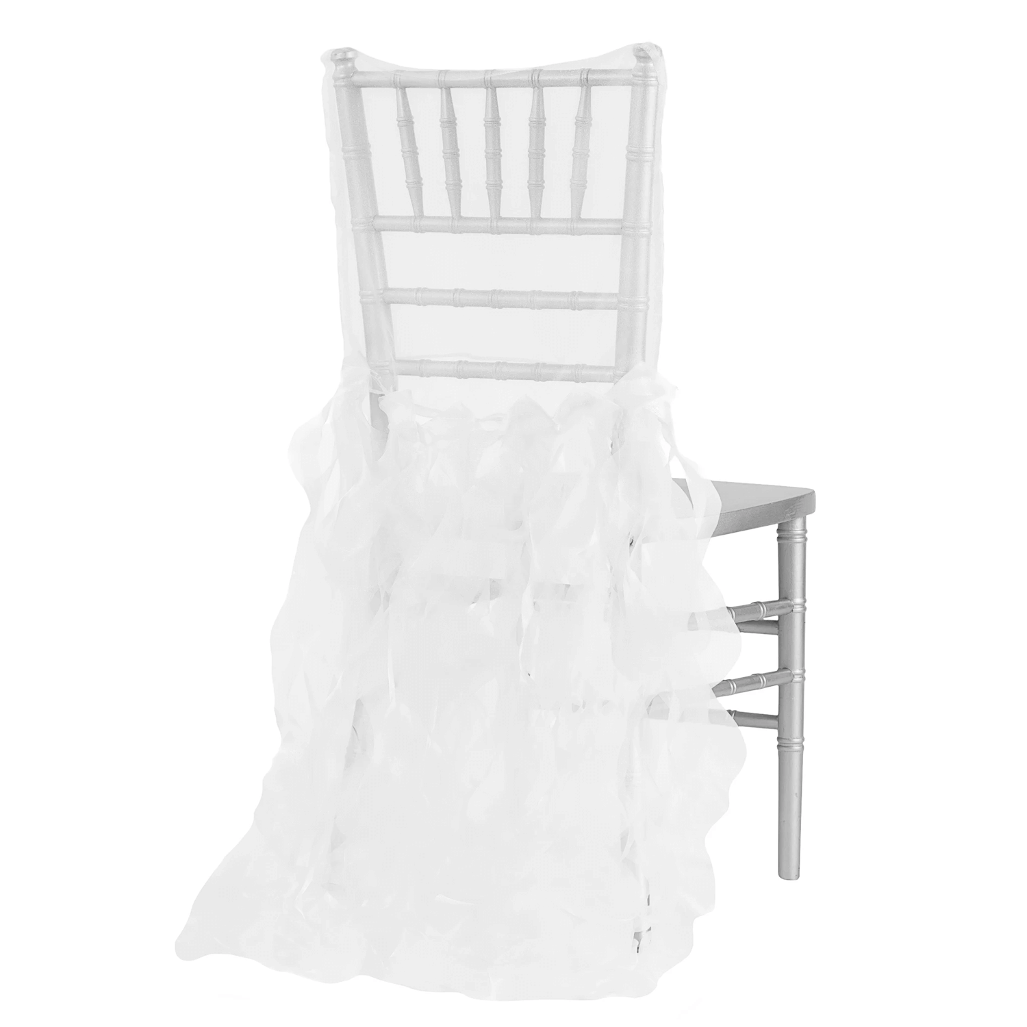 The look of the fabric ribbons is similar to that of the skirts in classic ball gowns, but the blend of organza keeps the fabric light and airy. While the white fabric pairs well with more traditional color scheme, the overall look is fun and whimsical, just screaming party. These chair covers are perfect for weddings, birthday parties, proms and formal dances, galas, or any event where you want to add an element of fairy tale princess.