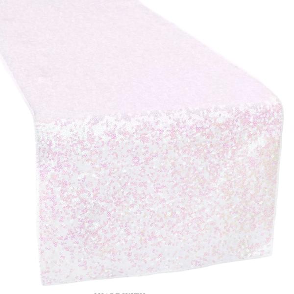 This table runner contains thousands of tiny iridescent colored sequins that appear to change color, add visual depth, catch the light and send it dancing. Use under candles, lanterns and mood lighting for a truly delightful effect.