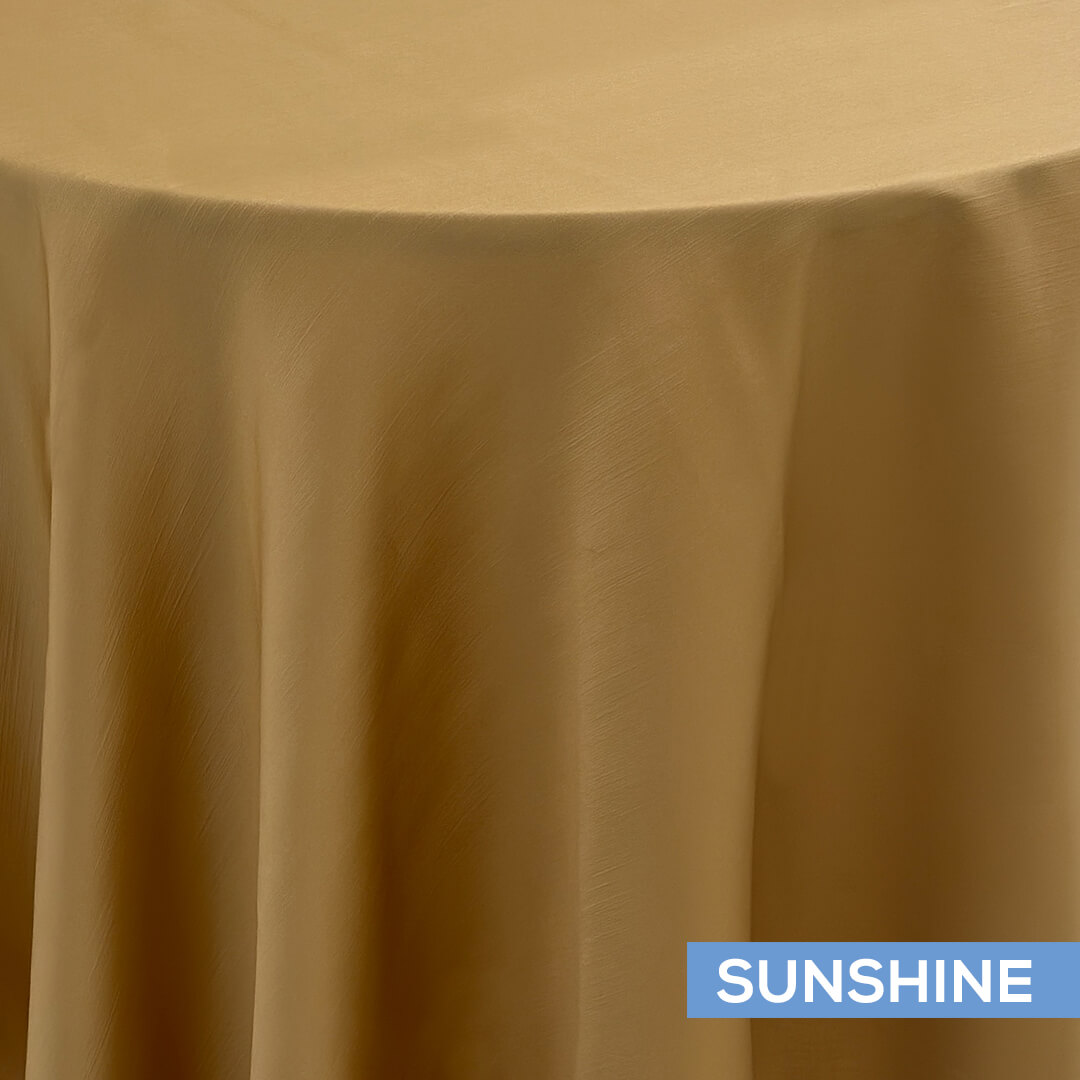 Add another touch of elegance to your event with some sleek tablecloths. They're perfect for weddings, parties, dinners, tradeshows, corporate events, and more. They will quickly become a staple in your toolbox for table decor whether you're planning your own party or are an event designer. You can even stock them in your linen closet year round for home decor. The sunshine hue makes them especially classic.