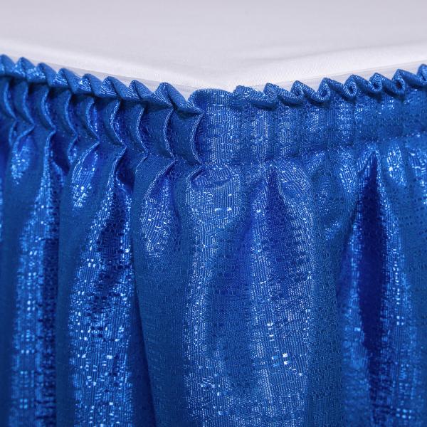 Dress up your event tables with our pleated table skirts. These skirts are the perfect option for glass topped tables, or for a layered linen look. This fabric has a sheen to it, perfect for proms and parties. And because our fabric skirts come many color options, matching your color theme is simple, and with our other table linen options get a matching tablecloth or one in a coordinating color.