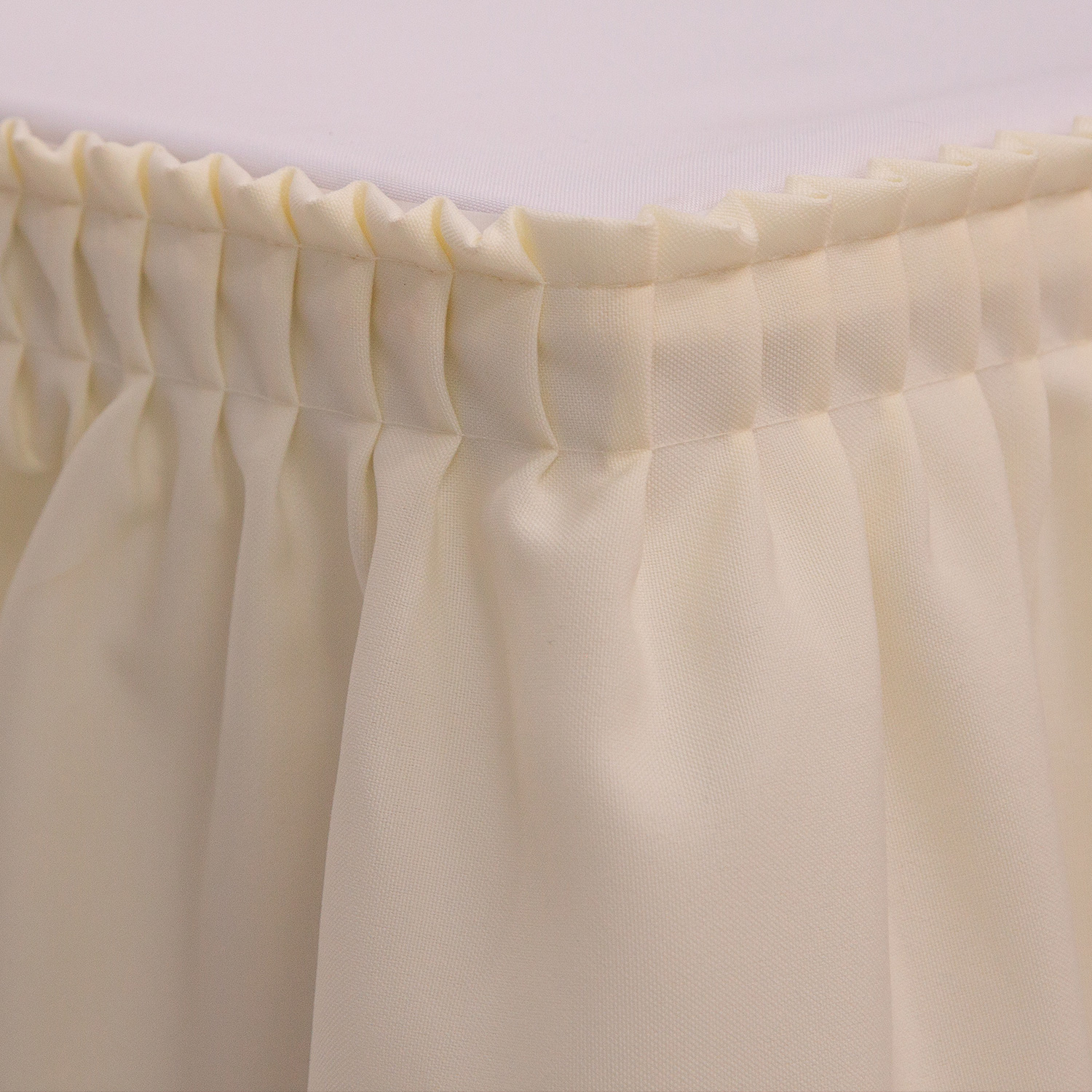 Dress up your event tables with our pleated table skirts. These skirts are the perfect option for glass topped tables, or for a layered linen look. The fabric holds up well to reuse, and because our skirts come many color options, matching your color theme is simple. With our other table linen options get a matching tablecloth or one in a coordinating color.