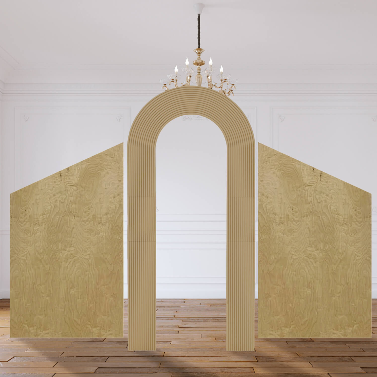 Create the backdrop of your dreams with this custom collapsing wall panel set. Made from ½ birch plywood (with the exception of Ripple panels are made with ¾ MDF), you can make any setting beautiful and chic. The set is also super durable and dependable. Each collapsible panel has additional supports at the base and middle where the panel folds in half. Whether producing an extravagant corporate event or something more intimate, it's designed for all the rigors of commercial use. Just keep in mind that the panels will arrive unfinished, so you will be required to paint over or cover them.
