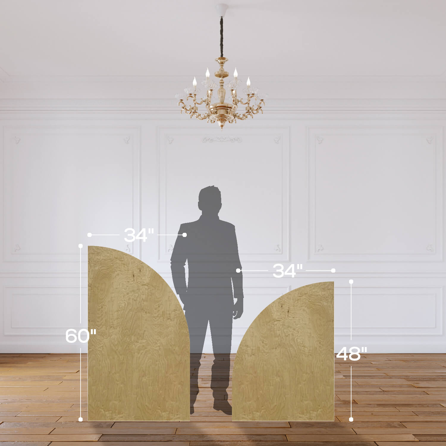 Create the backdrop of your dreams with this custom collapsing wall panel set. Made from ½ birch plywood (with the exception of Ripple panels are made with ¾ MDF), you can make any setting beautiful and chic. The set is also super durable and dependable. Each collapsible panel has additional supports at the base and middle where the panel folds in half. Whether producing an extravagant corporate event or something more intimate, it's designed for all the rigors of commercial use. Just keep in mind that the panels will arrive unfinished, so you will be required to paint over or cover them.