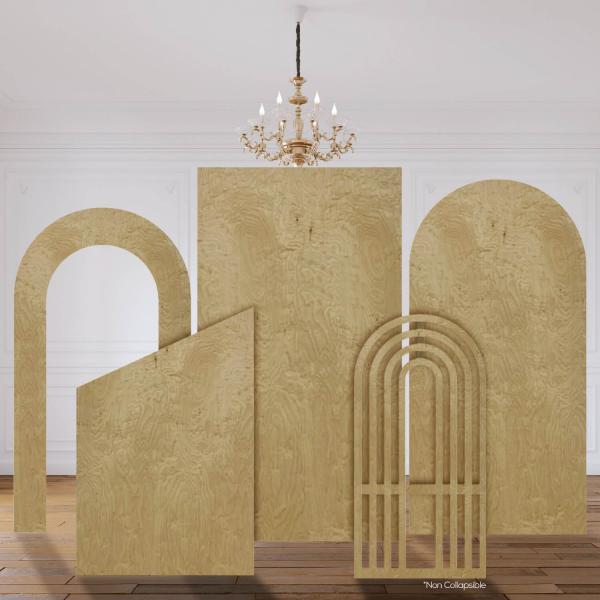 Create the backdrop of your dreams with this custom collapsing wall panel set. Made from ½ birch plywood (with the exception of Ripple panels are made with ¾ MDF), you can make any setting beautiful and chic. The set is also super durable and dependable. Each collapsible panel has additional supports at the base and middle where the panel folds in half. Whether producing an extravagant corporate event or something more intimate, it's designed for all the rigors of commercial use. Just keep in mind that the panels will arrive unfinished, so you will be required to paint over or cover them.
