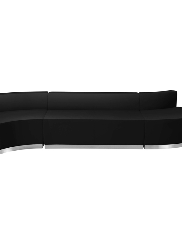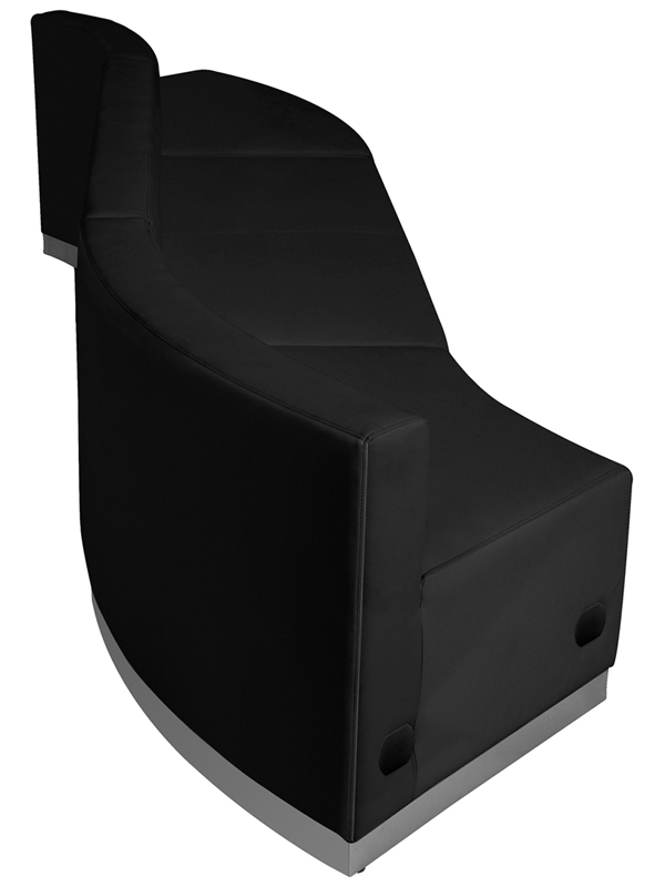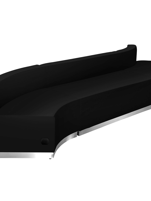 Make your reception area completely unique with our 3 piece black style “G” leather reception configuration. The adjustable floor gliders and locking connectors make this piece go seamlessly together in a safe and easy way. The three pieces are a black concave chair, black convex chair, and a black loveseat.
