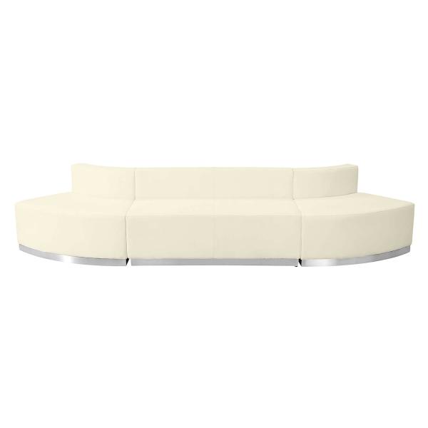 The 3 piece white style “J” of our titan modular furniture series blends great with any color scheme. The three pieces include a white loveseat with a white convex chair at each end. This beautiful style pairs well with modern and contemporary themes. Our high-quality products ensure long-lasting comfortable white seating.