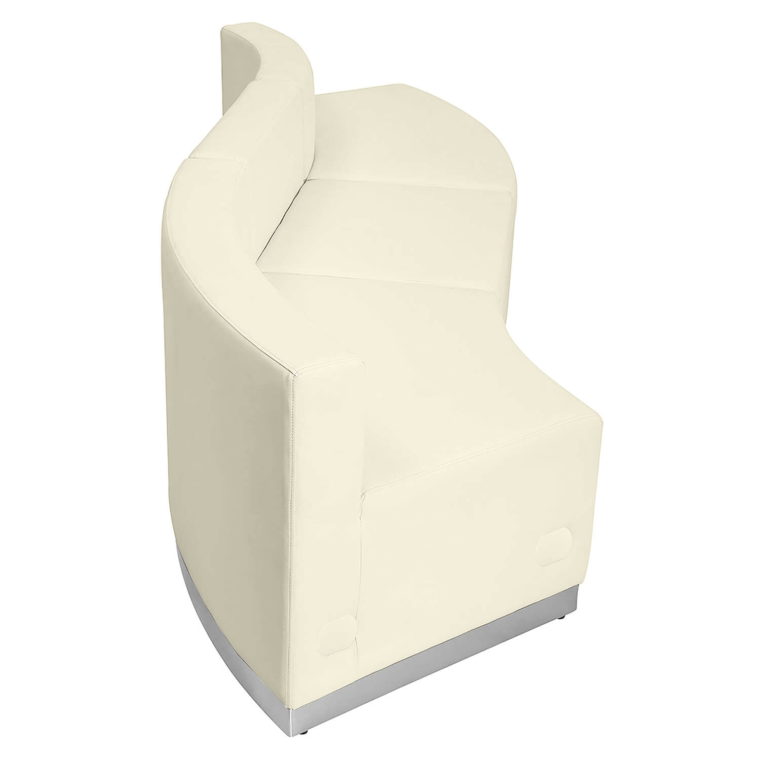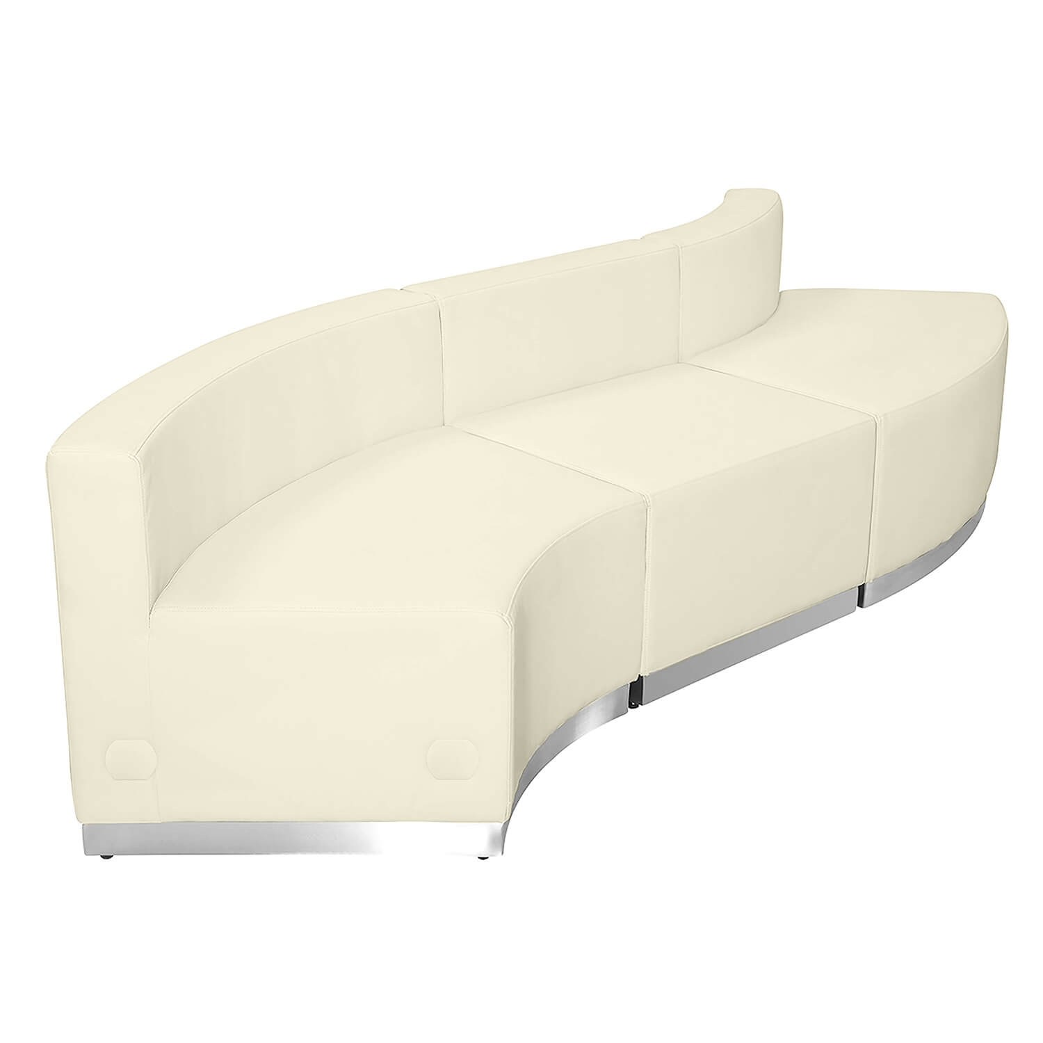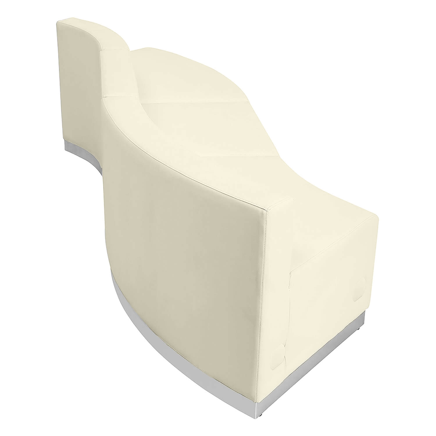 Similar to our style “G” configuration, this 3 piece white style “K” reception furniture creates a lovely curving seating structure. The set uses a white concave chair, convex chair, and normal leather chair. Our white LeatherSoft covers our fire retardant foam cushions with soft fabric and attractive stitching to make this piece