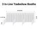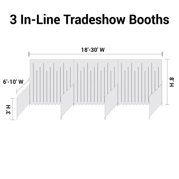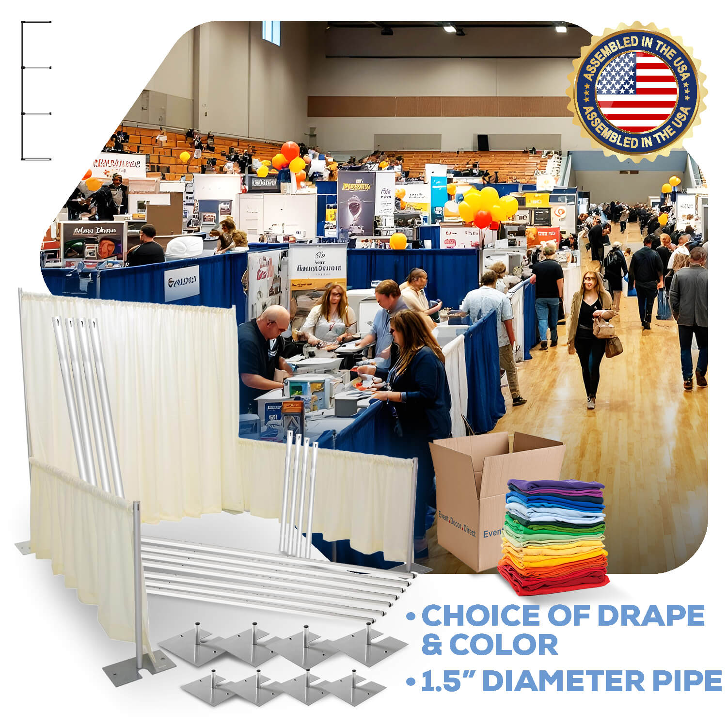 Enjoy easy setup using our Valu Series 1.5” aluminum uprights, with 6-10 adjustable drape supports and steel bases. The completed booths have 8ft tall real panels and 3ft tall side panels. The kit comes with hardware only, creating the frame for 3 booths.