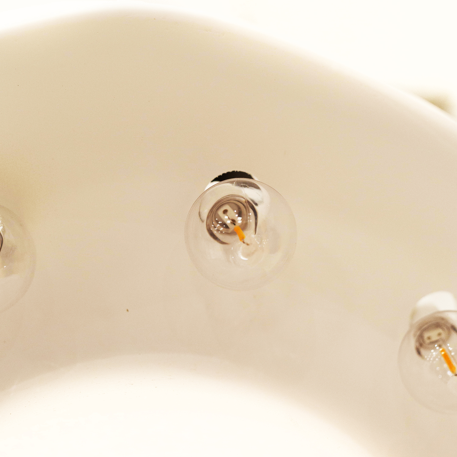 Materials: Warm light LED Edison Style Bulbs, 1/2 pine (painted White)